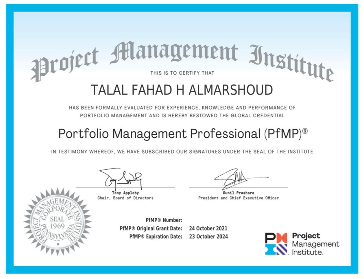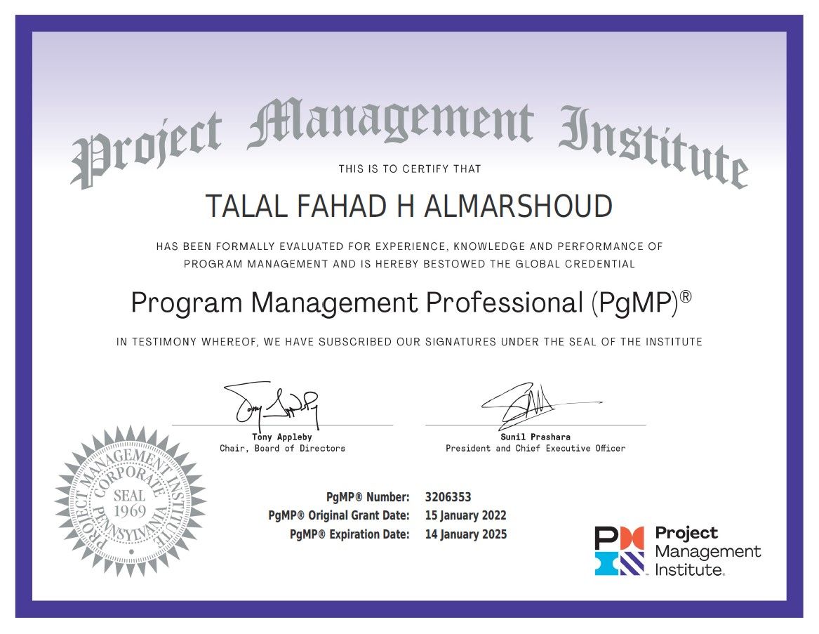 Congratulations Mr. Talal Al Marshoud on Achieving PgMP With Outstanding Score