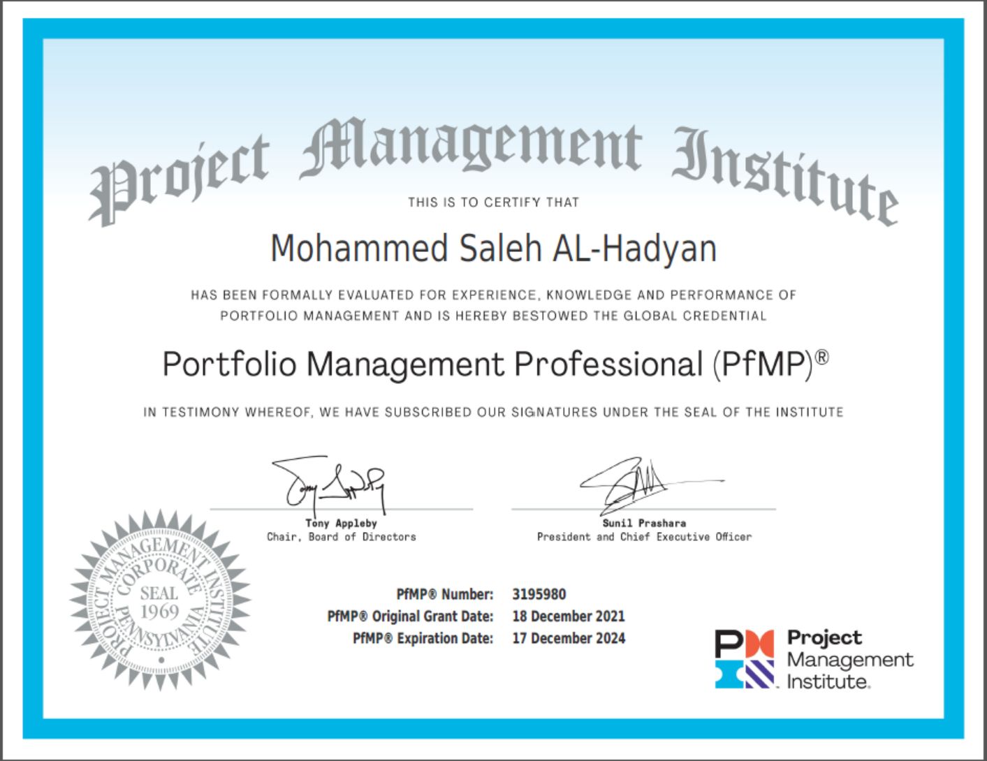 Congratulations Mr. Mohammed Al Hadyan on Achieving PfMP With Outstanding Score.
