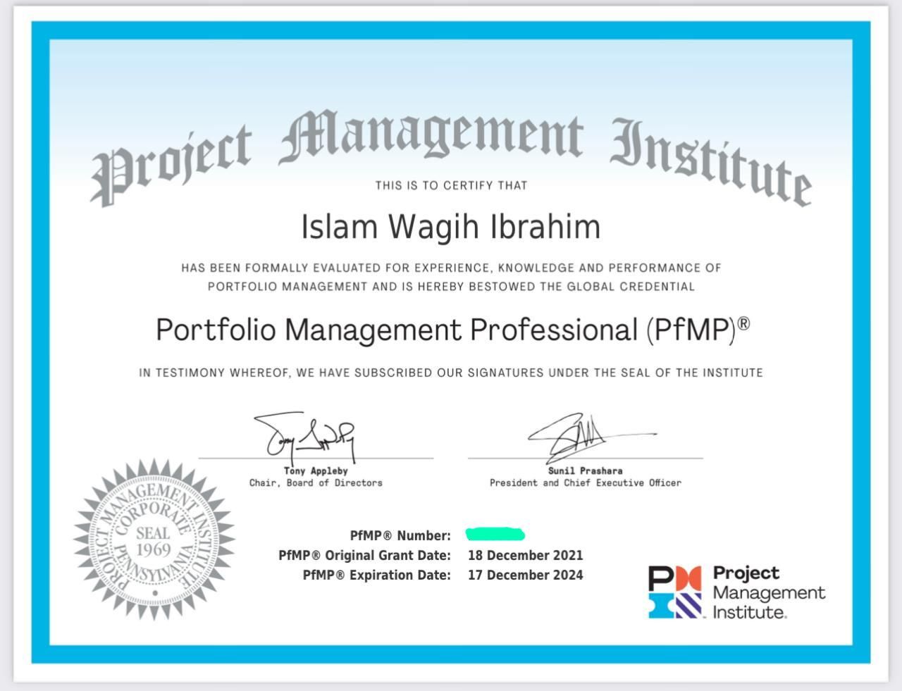 Congratulations Mr. Islam Wagih on Achieving PfMP With Outstanding Score.