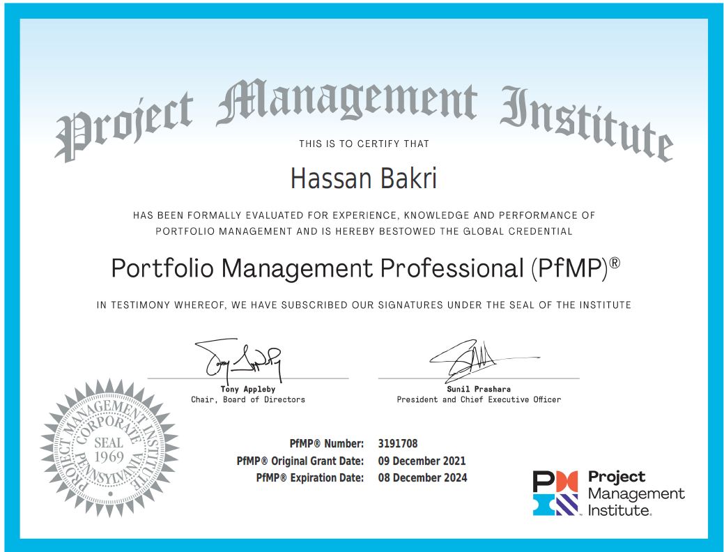 Congratulations Mr. Hassan Bakri on Achieving PfMP With Outstanding Score.