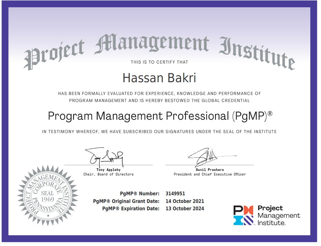 Congratulations Mr. Hassan Bakri on Achieving PgMP With Outstanding Score