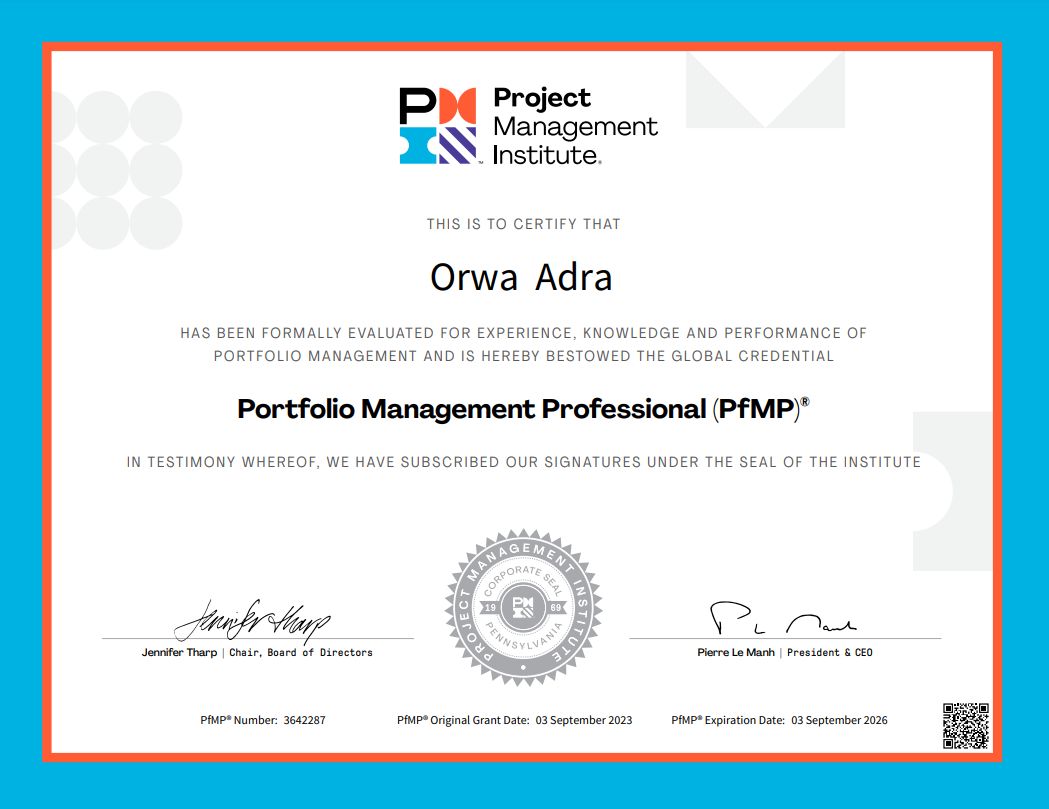 Congratulations Mr. Orwa Adra on Achieving PfMP With Outstanding Score