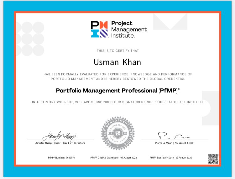 Congratulations Mr. Usman Khan on Achieving PfMP With Outstanding Score