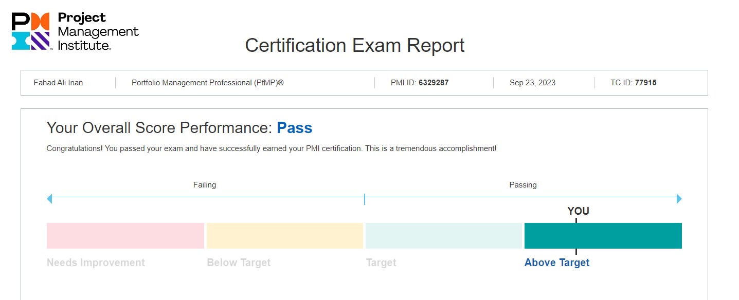 Congratulations Mr. Fhad Ali Inan on Achieving PfMP With Outstanding Score!
