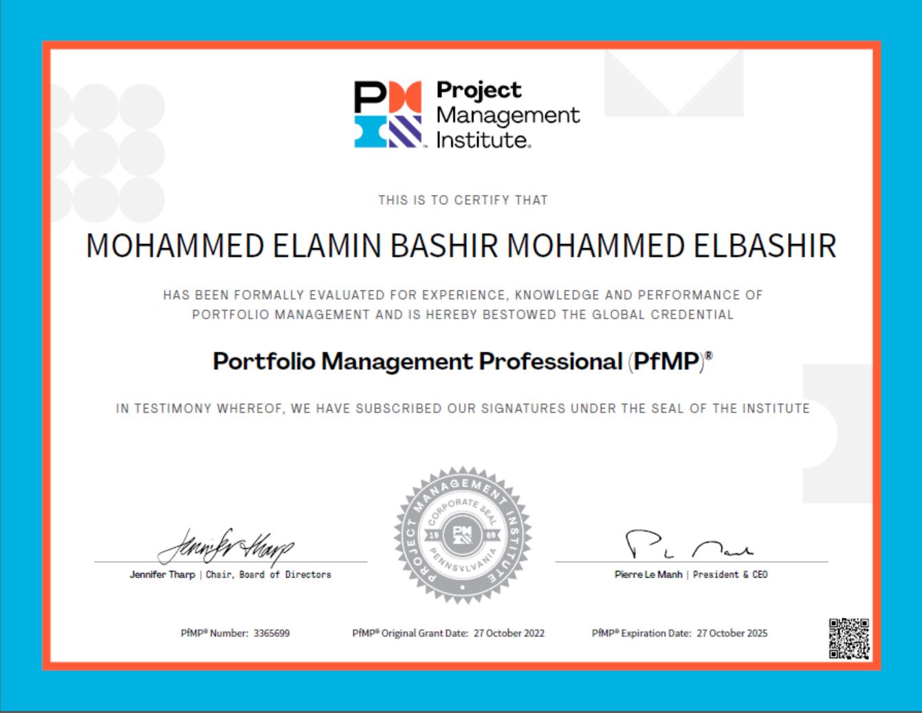 Congratulations Mr. Mohammed Elamin on Achieving PfMP With Outstanding Score