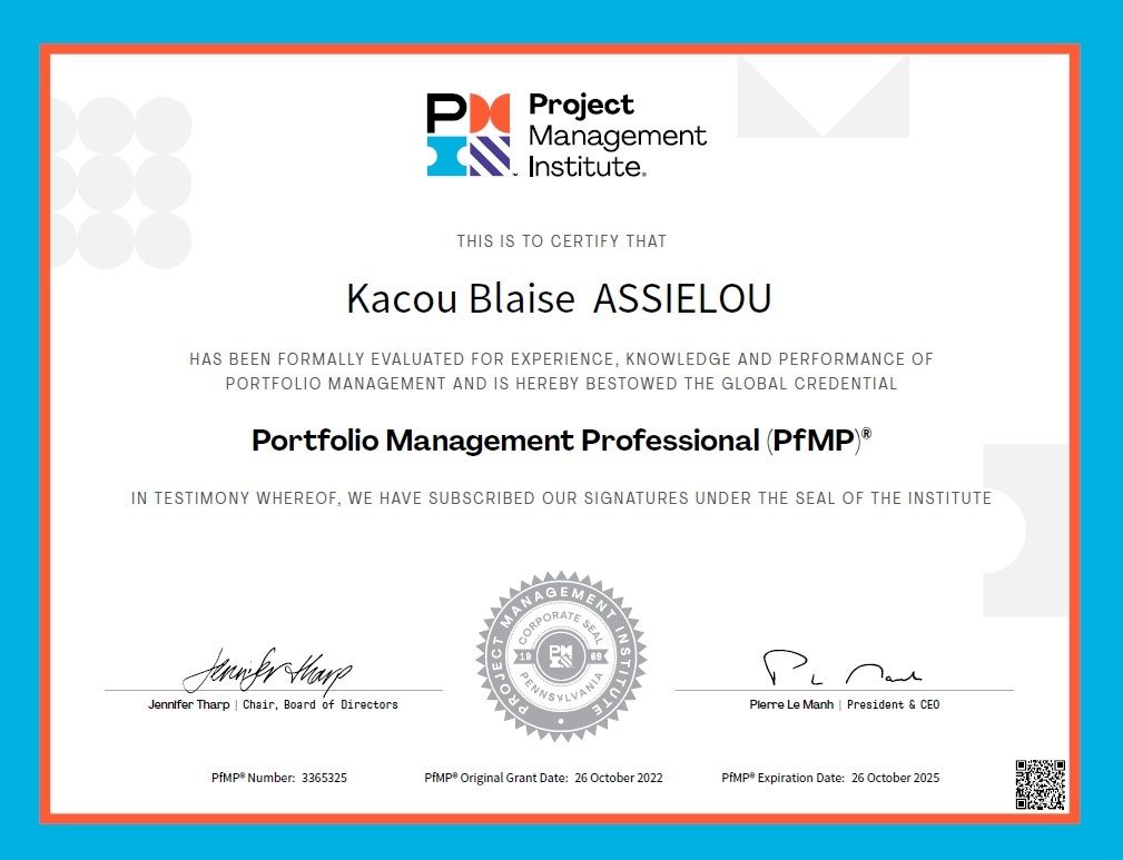 Congratulations Mr. Blaise ASSIELOU on Achieving PfMP With Outstanding Score