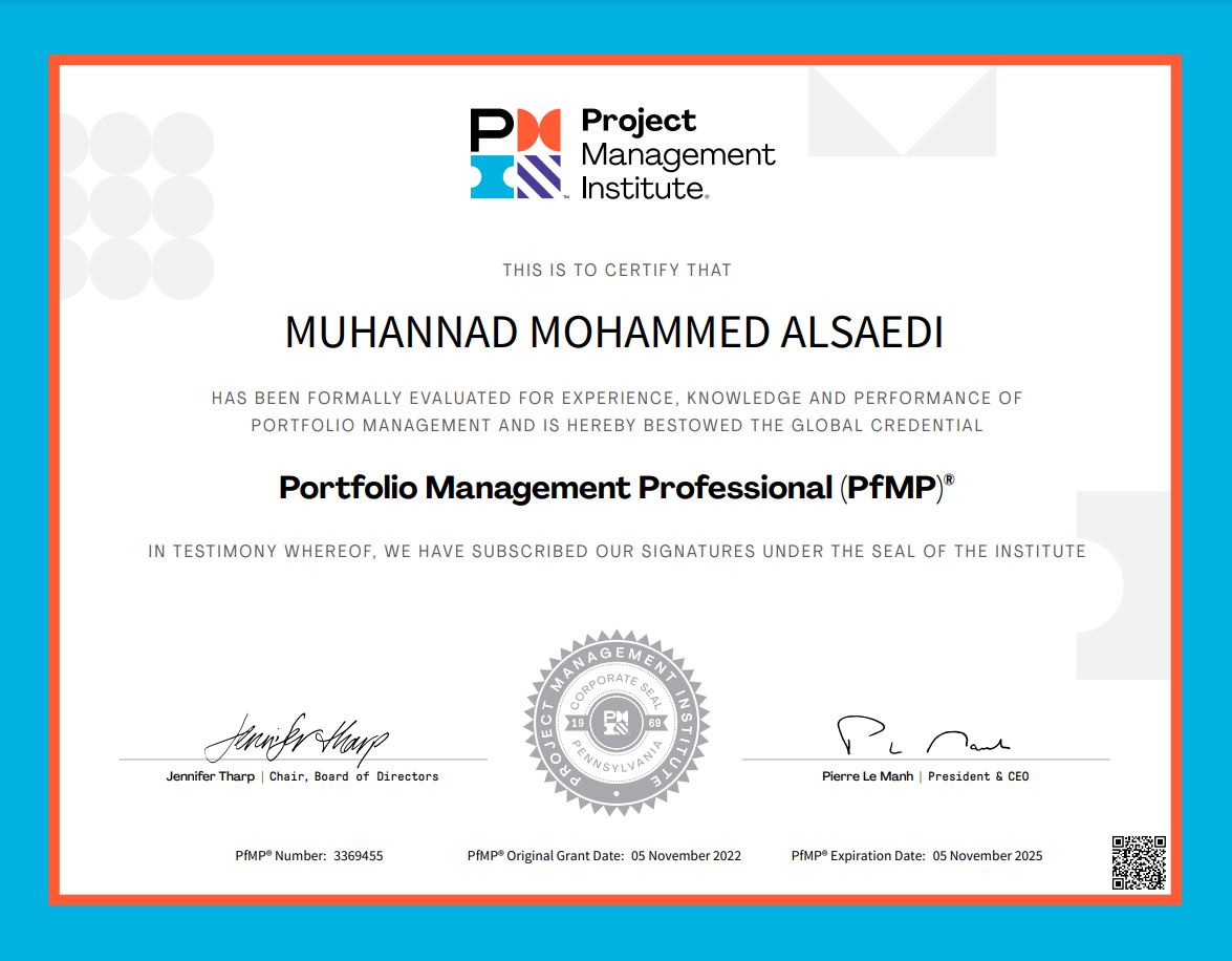 Congratulations Mr. Muhannad Alsaedi on Achieving PfMP With Outstanding Score